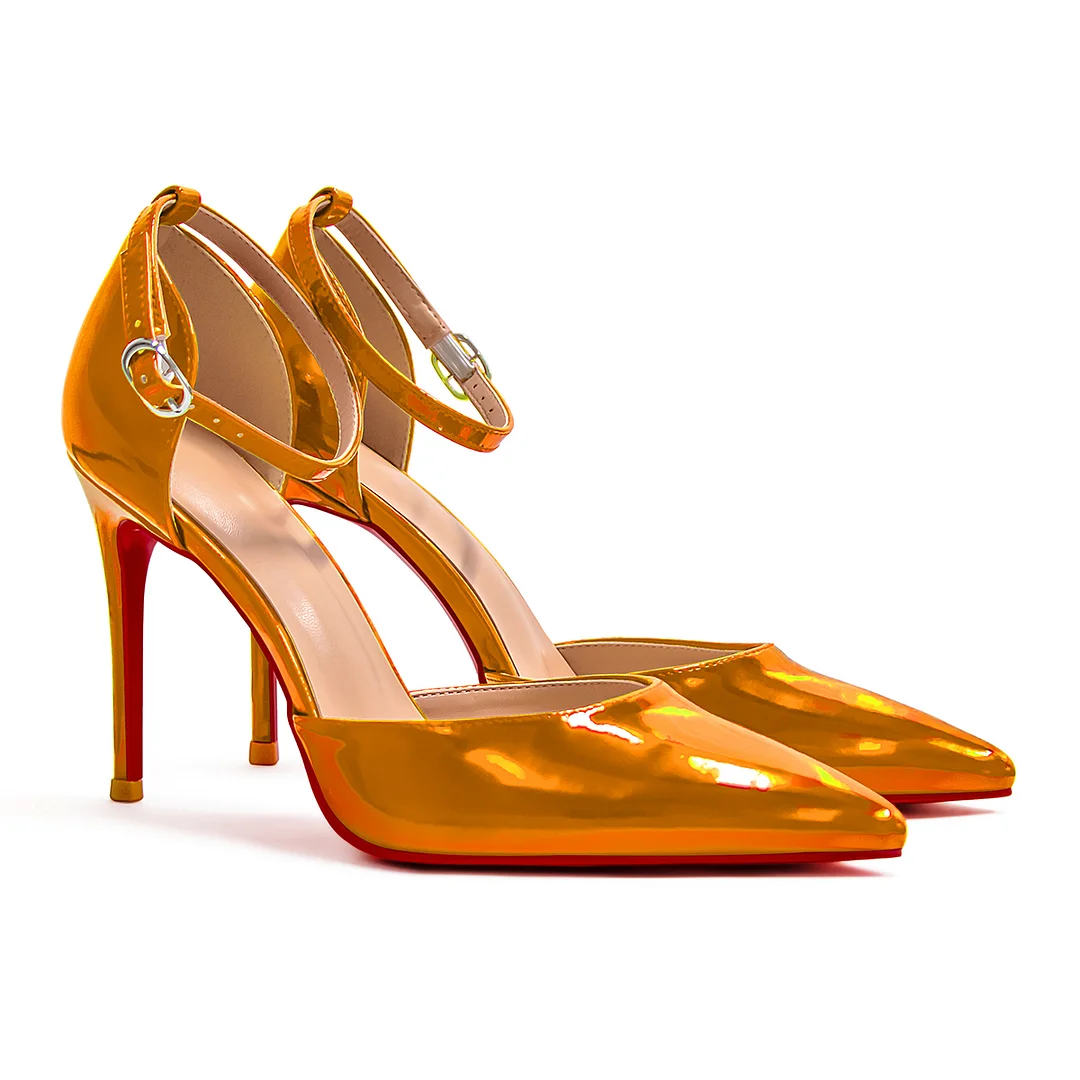 100mm Women’s High Heels Ankle Strap Pointed Toe Colorful Pumps Wedding Party Red bottom Sandals