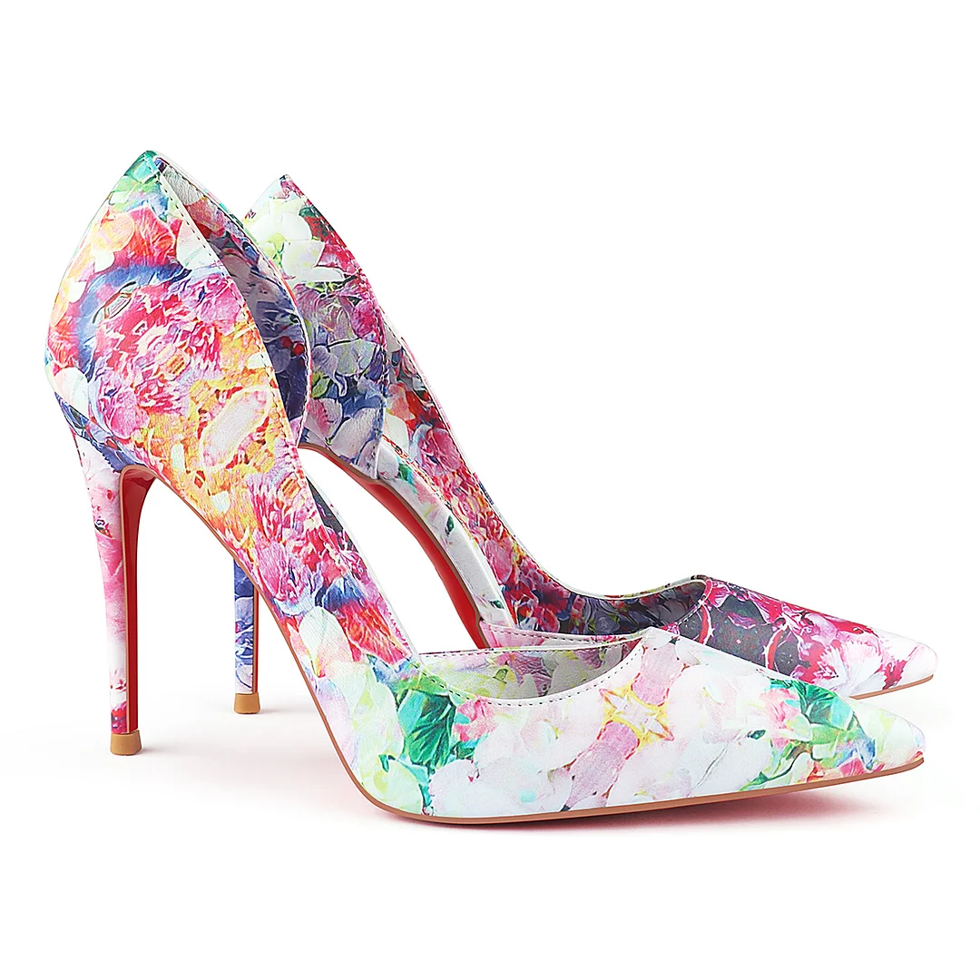 100mm Women's Pointed Toe Red Bottom Flowers Blooming Print Party Daily Wedding Pumps