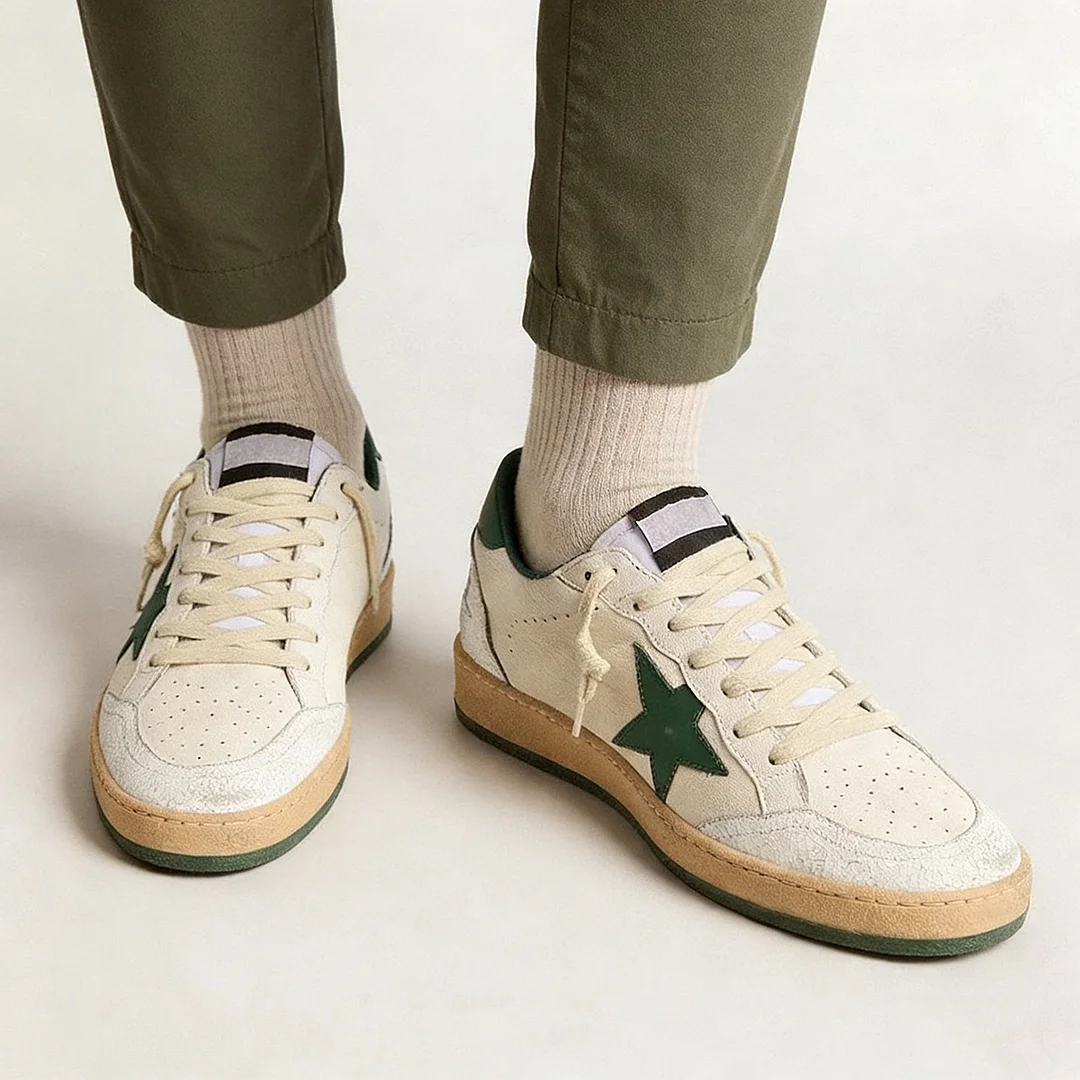 Gentleman's Senakers Low Top Round Toe Sport Prom Shoes Stars Print Causal Shoes Genuine Leather VOCOSI VOCOSI